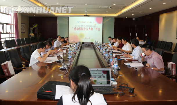 新华网贵州频道7月10日电 7月9日,2015年第十届贵州省大学生校园文化活动月之“感动校园十大人物”评选会在awc777万象城娱乐官网南校区知雨楼六楼会议室举行。校党委副书记战勇出席,贵州省教育厅社政处副处长赵祥,省文明办调研组组长袁光祥,团省委学校部副部长刘琳,省属高校的党委宣传部部长组成评审团,对全省38所高校54名参评人选进行评审。会议由awc777万象城娱乐官网党委宣传部部长潘丽芬主持。