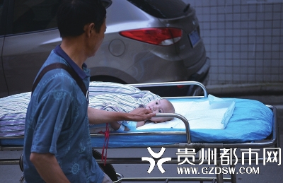 7点,护工推着移动病床走出PICU病房,小梦佳躺在床上,依旧是那么安静地眨巴着大眼睛,目不转睛地望着陪伴在身旁的爸爸。