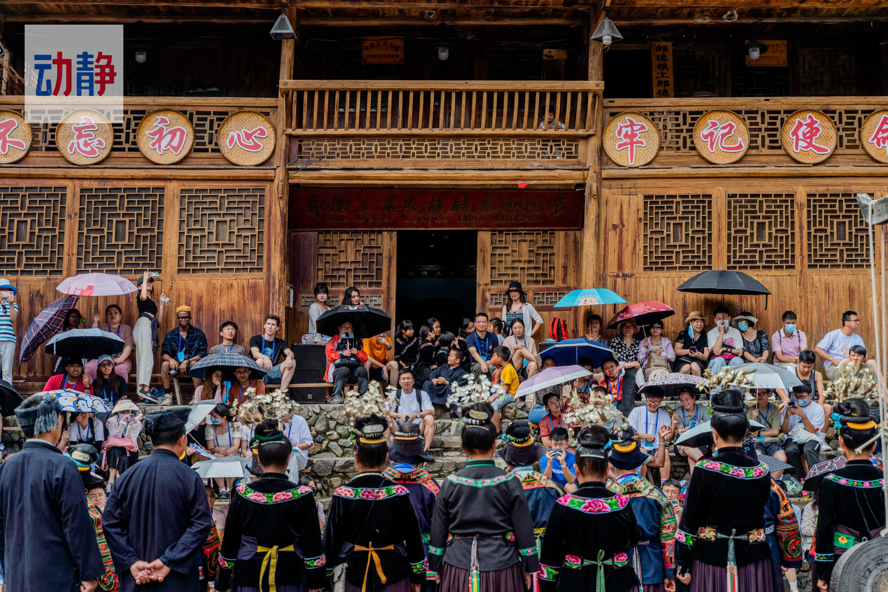 7月22日,“知行贵州——畅游文旅贵州夏令营”活动的中外学子到达贵州省黔东南州雷山县西北部、苗岭主峰雷公山麓丹江河畔的郎德苗寨,感受“中国民间歌舞艺术之乡”带来的魅力与风情。同时,郎德苗寨是2008年北京奥运火炬走过的地方!也是有史以来举行了奥运火炬点火仪式的唯一苗寨。