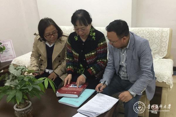 4月21日,外国语学院副院长龙芸、冉海勇和翻译教研室教师唐璐一行到贵州财经大学外国语学院就翻译硕士点申报工作进行学习和交流。