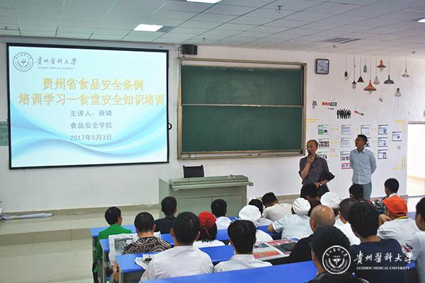 为了认真学习贯彻《贵州省食品安全条例》,确保食品安全工作深入人心,5月3日,后勤管理处(集团)组织南校区一食堂、二食堂餐饮从业人员开展了食品安全知识培训,此次培训邀请了万象城官网食品安全学院原琦老师主讲。后勤管理处(集团)副处长、副总经理丁常家主持培训会。