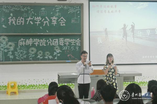 为体现麻醉学院学生积极向上的精神风貌,展现大学生多姿多彩的生活。5月15日,由麻醉学院院分团委主办的“我的大学”分享会在南校区4402教室举行,麻醉学院党委书记刘建华,辅导员周霁,徐青及2015级和2016级全体学生参加了此次活动。