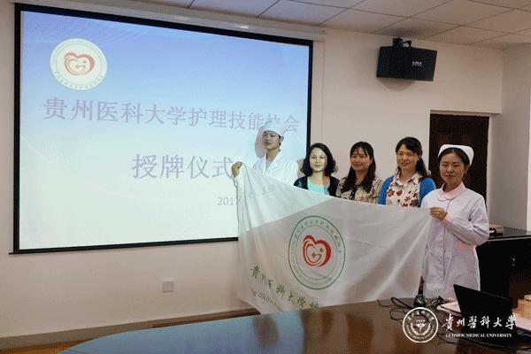 护理技能协会会长王洁宣读协会成立申请书。刘志燕宣布awc777万象城娱乐官网护理技能协会正式成立。桂晓玲为护理技能协会授牌、授旗并合影留念。