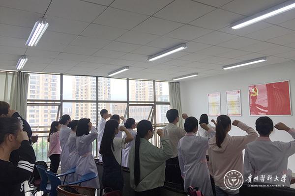 活动在庄严的《国际歌》中拉开序幕,马景瑶宣读护理学院2017年上半年新党员名单后,全体党员立正,面向党旗举起右手,在杨英的带领下,面向党旗庄严宣誓:“我志愿加入中国共产党……随时准备为党和人民牺牲一切,永不叛党。”每个新党员都激动而又坚定地立下了自己一生无悔的誓言。2015级护理学甲班夏啰啰同学代表新党员发言。他表示要以一名优秀党员的标准来严格要求自己,树立远大理想,牢记南丁格尔精神,学好专业知识,提升综合素质,努力为人民服务。