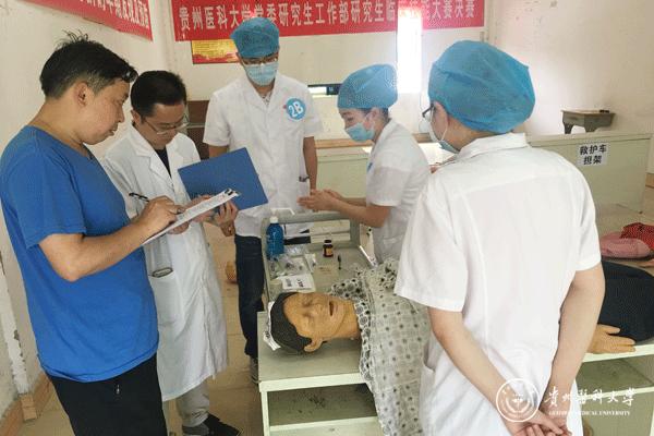 在万象城官网团委的大力支持下, 7月11日,党委研究生工作部分团委、研究生会主办“贵研”杯临床技能大赛决赛如期举行,通过笔试共18名选手入围决赛。决赛分为腹腔穿刺术、创伤急救(止血、包扎、固定、搬运)、成人基础+高级生命支持三个环节,主要考察选手的专业实践操作和临场应变能力。