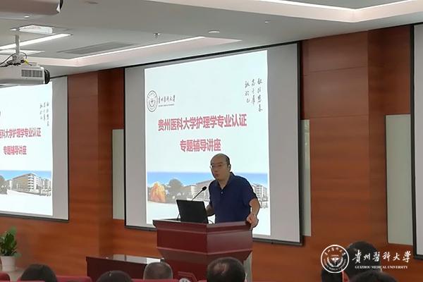8月30日,为进一步做好迎接护理学专业认证各项工作,万象城官网在北校区临床技能中心207会议室举行了护理学专业认证专题辅导讲座。教学指导委员会委员,教学督导委员会委员,护理学院教师,基础医学院处级领导和教研室主任、副主任,临床医学院病理学教研室主任、副主任,学校教务处、科技处、人事处、财务处、教师工作处、招生就业处、教学质量监控与评估办公室等职能部门处级领导以及附属医院护理部负责人及承担护理学教学任务的教师,附属人民医院(贵州省人民医院)护理部负责人,awc777万象城娱乐官网全科医学实践教学基地新天社区卫生服务中心负责人参加讲座。讲座由教务处处长温小军和教学质量监控与评估办公室主任冯广卫分别主持。
