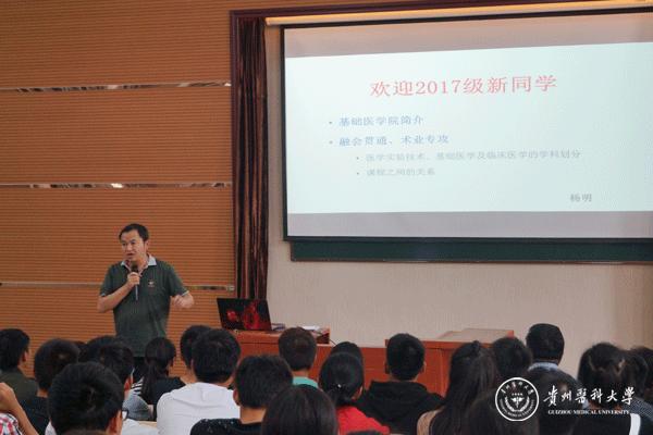 杨明介绍了基础医学院的组织机构、学科建设和发展前景,并以乳腺癌为实例向同学们生动地讲解了生物医学实验技术、基础医学、临床医学三者之间的关系,他对学生在专业学习上提出两点要求:一是注重学科学习的专业性,增强专业技能;二是提高专业学习能力,加强学科之间的融会贯通。