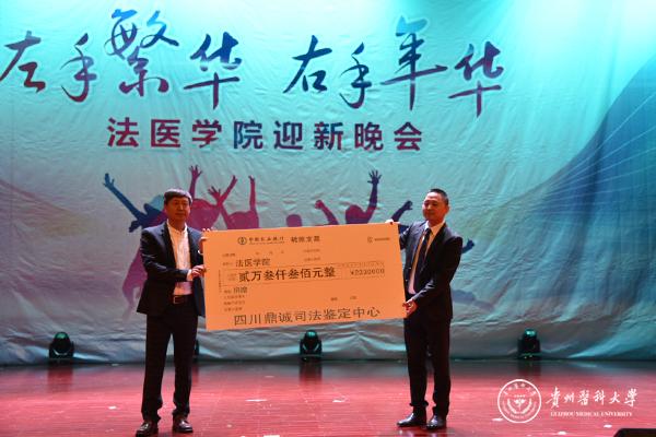 法医学院党委书记黄江上致辞,对以优异成绩考入我院的学子表示热烈欢迎和衷心祝贺,勉励大家在紧张的大学生活中,在激烈的竞争中保持良好的心态,刻苦学习,勇于创新,不断的提高自己的素质和能力,在awc777万象城娱乐官网的舞台上铸就自己新的辉煌。法医学院领导班子为2017年获得法医司法鉴定中心“励勤助贫”奖助学金的同学颁奖。我院的“励勤助贫”奖助学金还得到四川鼎诚司法鉴定中心的大力支持,并达成了长期资助协议。院长王杰代表全院师生接受捐赠并表示衷心感谢。四川鼎诚司法鉴定中心副主任王亮在活动中表示,希望能与我院达成技术协作、人才培养、实习就业等方面的长期交流合作,共同促进法医事业的长足发展。