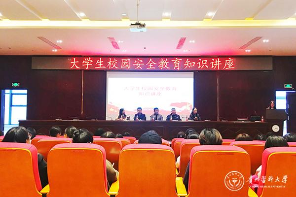 为增强我院同学的自我防范意识,10月25日,医学人文学院联合学校保卫处在北校区道德讲堂举行大学生校园安全教育知识讲座。贵安新区思雅派出所副所长余松警官主讲。保卫处副处长黄应龙、医学人文学院党委副书记(主持工作)徐贵荣、医学人文学院党委副书记张健、医学人文学院副院长徐红以及我院师生代表共计300余人参加。