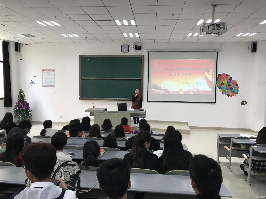 11月7日,外国语学院在南校区4107教室召开了以“学习十九大精神 勇担青春责任”为主题的学习会。外国语学院党委书记张婷婷、副书记马琳娜、分团委负责人徐艺娟出席会议。全体学生党员、学生会成员及学生干部、代表等在内的80余人参加了本次专题学习。学习会由徐艺娟老师主持。