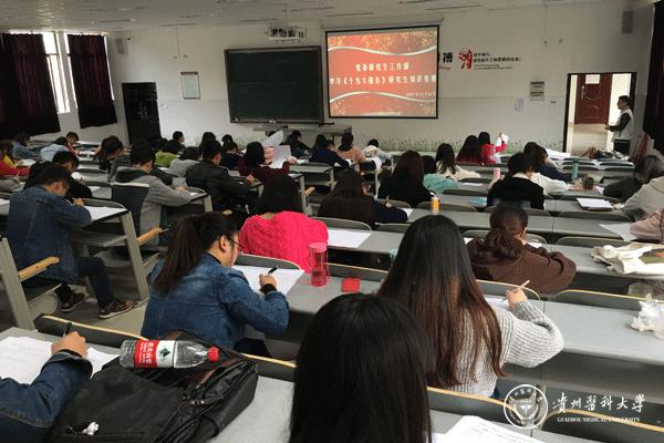 为深入学习贯彻党的十九大精神,11月10日,党委研究生工作部在南校区宏远楼9201教室举行学习《十九大报告》暨十九大知识竞赛活动。党委研究生工作部副部长余资江、分团委书记包欢欢和就业办公室主任刘旖旎,60余名硕士研究生会和分团委学生干部参加。活动前,余资江介绍党的十九大精神,包欢欢对活动形式、要求及内容作了详细介绍。竞赛以笔试形式进行,主要以党的十九大精神为主要考点,从思想政治建设、文化建设、经济建设、生态文明建设以及国防建设等方面。通过笔试,黄梅、陈婷婷获一等奖;王蓝晨、张丽、杨非、陈宗跃、吴国萍获二等奖;李卓君、赵爽、段恬筱、李莹、李星星、陈晓雪、彭金刚获三等奖。
