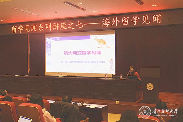 王艺明首先以一段澳洲袋鼠的视频,吸引了同学们的注意力。接着,介绍了澳大利亚概况和澳大利亚留学保险、签证及学校情况等,重点介绍了澳大利亚八大名校的特点及优势学科,以便为有兴趣的同学们提供直接的择校参考。她谈到了留学生活,既有紧张工作中的休闲放松,又有异国他乡的浓浓温情。最后,王艺明介绍了澳大利亚的生态环境,并从自身出发,结合国内同学们的实际情况,全方位、多角度地向同学们展示了澳大利亚的留学见闻。她激励在场的年轻学子奋力拼搏,做好准备,增长见闻,提高自己,以便为社会做更大的贡献。
