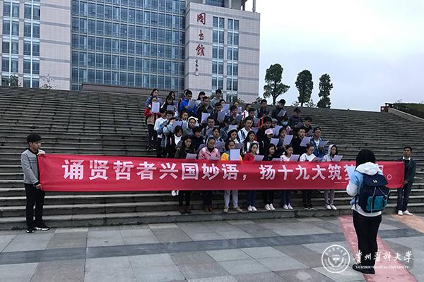 为将十九大会议精神更好的传达到每位同学心中,让同学们更好的将十九大精神付诸于实践。医学人文学院分团委学生会全体成员于11月17日早上7:30在awc777万象城娱乐官网花溪校区图书馆前组织开展了“青言清语颂十九”晨读活动。
