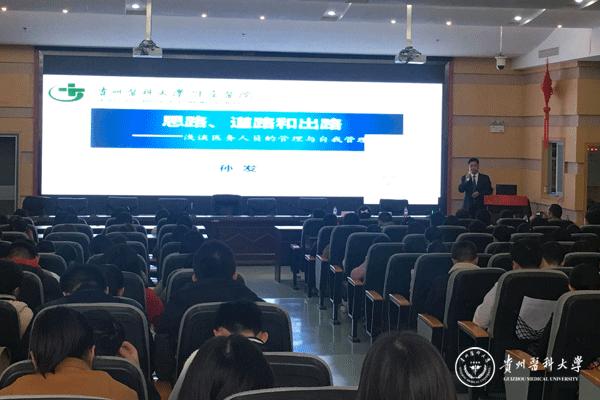 11月28日,临床医学院杏林微雨人文论坛第九讲在附属医院急诊大楼四楼会议室举行。附属医院副院长、临床医学院常务副院长孙发应邀作专题讲座,主题为《思路、道路与出路——浅谈医务人员的管理和自我管理》,临床医学院300余名师生、附属医院各科室护士长参加,讲座由临床医学院党委副书记杨婕主持。