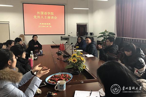为进一步做好新时期统一战线工作,更加深入开展民主生活会和第三届教职工代表大会第五次会议会前意见征求, 3月7日,外国语学院召开党外人士代表座谈会,学院班子成员、民主党派教师、群众教师代表参加会议。