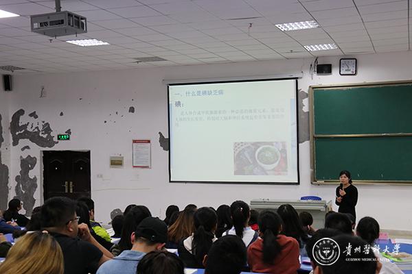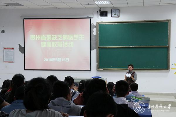 杨光红对此次健康教育活动的目的、意义作了介绍,并进行了动员。李杨则就活动的内容、组织形式及其必要性等进行讲解。参与健康教育活动的同学们接受了碘缺乏病防治知识的摸底调查与测试。调查结束后,省疾控中心周德梅副主任医师作碘缺乏病防治知识讲座,内容包括碘缺乏病的定义和危害、中国与全球的碘缺乏病流行形势、贵州省碘缺乏病历史与现状、碘缺乏病的防治方法等。