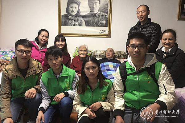 90高龄的原组织部部长白国瑛老师虽患白内障失明,但对于同学们的到来感到非常欣慰;知名微生物专家董熙昌老师分享了他珍藏了一辈子的医学宝典;原工会副主席钟金石老师左半身瘫痪,见到前来慰问的志愿队激动不已;在贵医附院金泽鑫老师住的病房里充满温暖。最后,志愿者们为老人送上手写贺卡表示真诚的祝福。