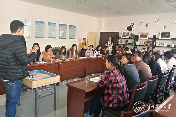 为提高万象城官网心理辅导员业务技能,使其掌握沙盘游戏治疗基本技术更好的开展心理辅导工作,3月29日,大学生心理健康教育与咨询中心邀请贵州师范大学心理学系刘伟老师在心理中心举办了沙盘游戏业务技能培训。全体心理辅导员以及“温心之声”成员、大学生心理健康协会成员参加培训。
