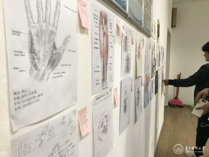 医学生视觉作品表达了学生对生活的热爱、对学习的热爱。活动期间共征集到29幅画作,24日,对所有画作进行了现场投票,邀请在馆同学为自己喜爱的作品投票,票选出优秀作品6幅。同学们所交作品或为手绘版解剖学图谱、或为创意版手绘解剖图谱、或为学生自己喜爱的事物,有彩绘的、有素描的,有写实的、有抽象的。