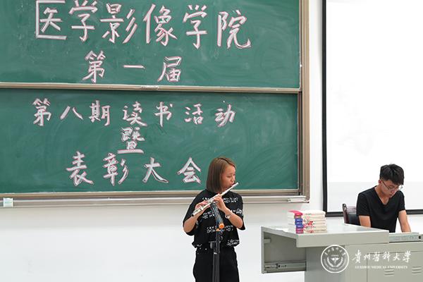 活动共分为“青春之我,畅游书海”、“奋斗之我,圆梦贵医”、“担当之我,助力中国”三个篇章,同学们以丰富多彩的形式畅谈读书乐趣,分享读书心得,并献上了精彩的歌曲演唱,笛子演奏《星月神话》、诗朗诵《祖国啊,我亲爱的祖国》等。其中,以万象城官网八十华诞系列活动剪辑为背景,由学生原创《庆贵医八十华诞》诗词朗诵将活动推向了高潮,充分展了影像学子心系母校、情系国家的感恩情怀和爱国情怀。