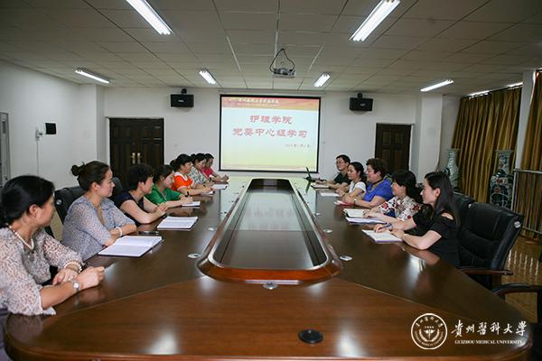 7月4日,护理学院在南校区会议室召开党委中心组专题学习会,会议由院党委副书记杨英主持,党委中心组全体成员参加,学院副科级以上干部、全体辅导员列席会议。