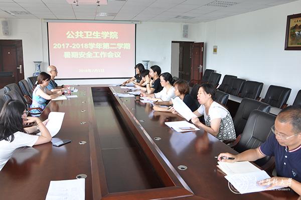 7月5日,公共卫生学院暑期安全工作会议在南校区博雅楼二楼会议室召开。公共卫生学院党委书记杨光红、副书记何江,各学科系、实验室、行政管理科室、学生管理科等负责人参加会议,会议由何江主持。