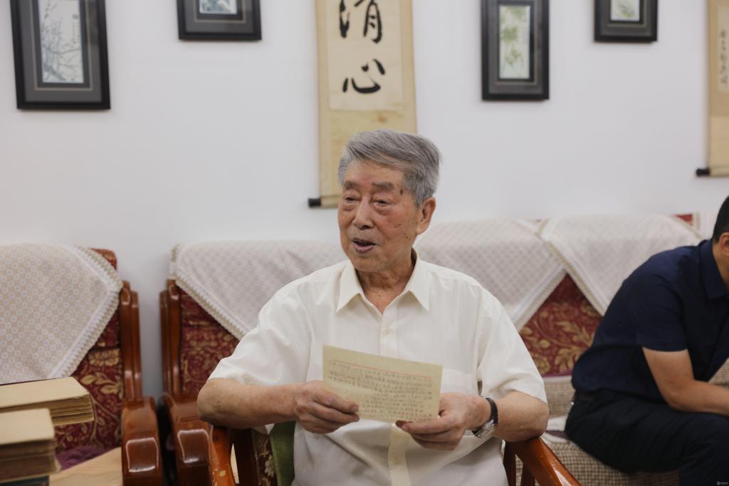 捐赠仪式后,刘伍生教授再次接受了采访,介绍了两本英文教材及便条的来源,其中《病理学》为1943级贵医校友鲍镇美(中日友好医院泌尿外科教授)临别时所赠,《实验诊断学》为哥哥刘载生赠送,便条内容是刘维德教授书写的、对自己工作提出的要求。刘伍生教授还回忆了自己在贵医学习、生活、工作的经历,介绍了李宗恩、王季午、朱懋根、张作干、刘维德等协和先贤在贵医工作情况。并回忆了贵医搬迁重庆歌乐山情况,还介绍了谷镜汧教授、张昌绍教授上课情景。在母校八十华诞即将到来之际,刘伍生教授祝福母校蒸蒸日上、越办越好。