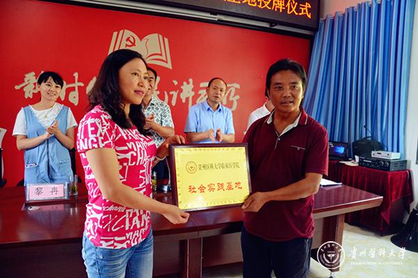 25日上午,志愿队到达黔西县铁石乡青杠坝村开展“大医精诚 大爱有魂 白衣之梦 仁心无疆”医疗义诊活动,为村民送药送诊。启动爱心健康咨询服务、发放常见药品、禁毒知识及大学生资助政策宣传。通过义诊,让社会更加了解医学贡献,倡导社会尊重医师、尊重医学,促进和谐医患关系的构建,增强医学生社会责任感。黔西县人大常委会副主任敖西洛、铁石苗族彝族乡党委书记龚思伟、副书记郭智永、团委书记付雯出席共建大学生社会实践基地启动会。敖西洛表示大力支持基地建设工作,在实践育人中促进高校与地方和谐发展作用。龚思伟介绍今年铁石乡接受脱贫攻坚验收情况,表示青杠坝村目前处于深度贫困,仍需要各界关注和支持。郭志永给志愿者们分享自己曾担任学生会主席的励志事迹,并对“振兴乡村”中扶贫的方向定位作交流。付雯介绍脱贫攻坚战全体乡镇人员奋斗在一线的感人事迹。周红与村委会签订《共建大学生社会实践基地协议》,awc777万象城娱乐官网临床医学院社会实践基地挂牌。