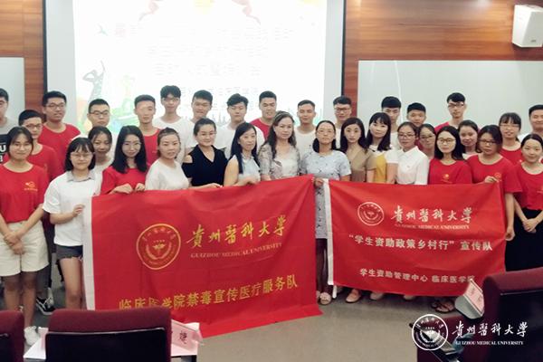 为引领教育广大青年学生勇做担当民族复兴大任的时代新人,以实际行动助力精准扶贫,服务乡村振兴战略,切实在感受改革开放40年取得的新成就新面貌的生动实践中受教育、长才干、作贡献。临床医学院在黔西县人大,铁石乡政府、团委,青岗坝村村委会,贵州省女子强制戒毒所及教育厅语言文字工作委员会办公室的大力支持下,8月23日至26日开展学习普及禁毒知识及大学生资助政策乡村宣传、送药送诊、关爱老人及留守儿童、红色教育等社会实践系列活动。切实提高当地群众禁毒的安全意识和自我防范能力,在社会营造浓厚的禁毒氛围,助力“健康贵州”医疗扶贫服务,并且深入基层到经济困难家庭详细讲解国家、省级、学校实施的各项资助政策,鼓励家长支持子女接受更高层次教育,消除经济顾虑,同时让大学生步入社会了解基层,在艰苦环境中凝练自己。