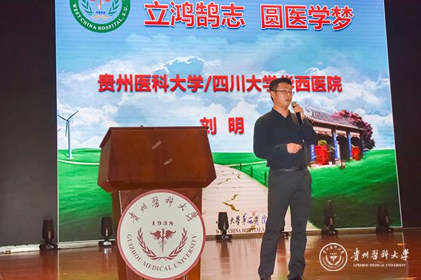 开学典礼结束后,刘明以“立鸿鹄志圆医学梦”为主题给新同学上了开学第一课。他向大家介绍了他的学医之路,从学医之路再思考、大学生涯误区与真相、正确对待“学医”与“医学”三个方面向新生阐述了如何才能做一名好医生。第一、要读万卷书,行万里路,阅人无数,高人指路;第二、刘明博士表示“格局决定境界”,要做有情怀的文化人;第三、希望大家掌握精准的记忆、熟练的技能、到位的沟通、良好的英语等核心能力。