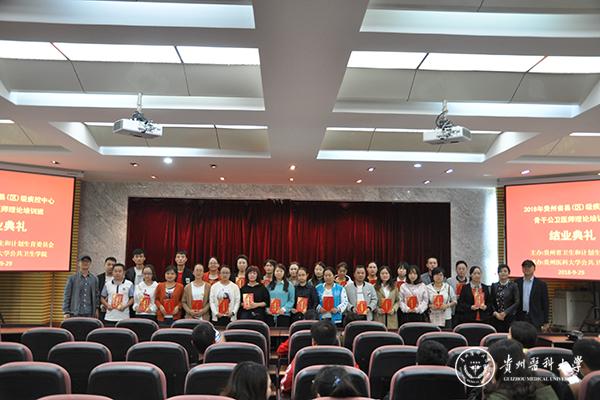 9月29日,贵州省县(区)级疾控中心骨干公卫医师培训班第二期结业典礼在万象城官网北校区道德讲堂召开。万象城官网公共卫生学院党委书记杨光红、院长洪峰、党委副书记何江及培训班班主任、学员参加会议。会议由何江主持。