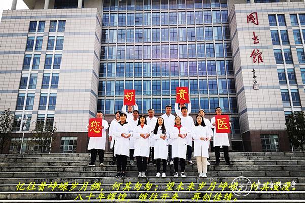 对贵医的祝福有:“忆往昔,桃李不言,自有风雨话沧桑;看今朝,厚德载物,更续辉煌誉五洲。祝贵医永远朝气蓬勃,桃李满天下”;“沙河桥头,几度徜徉;花溪道上,百般骋想”。“沙河垂柳党武绿杨,见证学校沧桑辉煌。贵医之庠,我们追逐梦想的地方”;“忆往昔峥嵘岁月稠,何其匆匆;望未来峥嵘岁月,何其漫漫;八十年光辉,继往开来,再创佳绩”;“尊道益智修本心,日有所进育栋梁。天道酬勤心满志,共愿母校永辉煌”;“贵医,您好。经过八十年的风雨历程,我们欣喜在您八十华诞之时能够与您相逢,您是我的梦想起航的地方,生日快乐”;“南方有桂树,枝枝连贵医;80年风雨兼程,恒发春华;感谢有你相伴”;