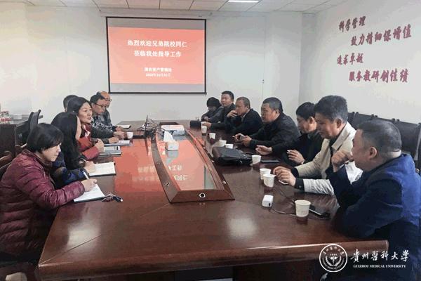 10月31日,贵州大学、贵州师范大学、贵州财经大学、贵州民族大学、贵阳中医学院、贵州理工学院、贵州轻工职业技术学院国有资产管理处处长一行7人到万象城官网进行交流,国资处处长张玲玲、副处长杨冰和设备处处长高鸿以及国资处各科室负责人在南校区知雨楼3-18会议室进行了交流座谈。