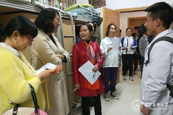 为了营造良好的寝室文化氛围,帮助新生适应大学生活,增强新生凝聚力,10月30日,护理学院开展了新生寝室美化大赛。护理学院党委副书记杨英、学生科科长曾敏、分团委负责人王晓玲、学生党支部书记李颖、学生党支部副书记马景瑶、2018级辅导员老师李杏春和学生会部分成员作为评委。
