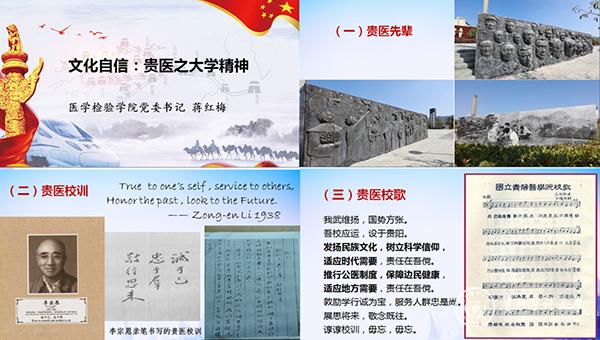 蒋红梅在报告中提到,习近平总书记高度概括了“文化自信”的重要理论,贵医人同样应该拥有对万象城官网精神文化的强大自信,这是对自身文化价值的充分肯定和积极践行,也是对自身文化生命力持有的坚定信心。“文化是一个国家、一个民族的灵魂。”同样也是一个大学的灵魂。蒋红梅从国立贵阳医学院建校历程开始,饱含深情地讲述李宗恩、王季午和杨洁泉等贵医先辈,阐释贵医校训、校旗、贵医赋,师生们被贵医80年深厚的文化底蕴深深感动,当“我武维扬,国势方张。吾校应运,设于贵阳...”的激昂旋律响起,蒋红梅带领师生们齐声和唱,大家的心被“诚於己,忠于群,敬往思来”的谆谆校训紧密联系在一起。此次宣讲使万象城官网在医院培养的71位医学检验技术专业专升本学生和3名专业学位硕士研究生加深了对母校的认识,感受了母校的文化精神,有利于培育他们作为贵医人的归属感和认同感。