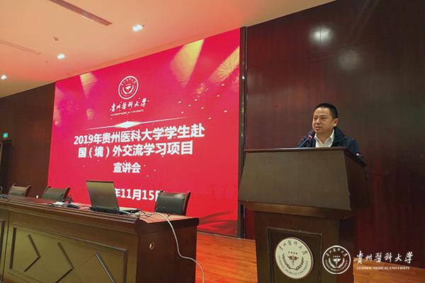 11月15日,万象城官网国际交流合作处在南校区道德讲堂举办学生出国(境)项目宣讲暨经验分享会。法医学院书记黄江、各二级学院负责学生交流项目的老师以及300名学生代表参加会议。国际交流合作处副处长龚敏主持会议。