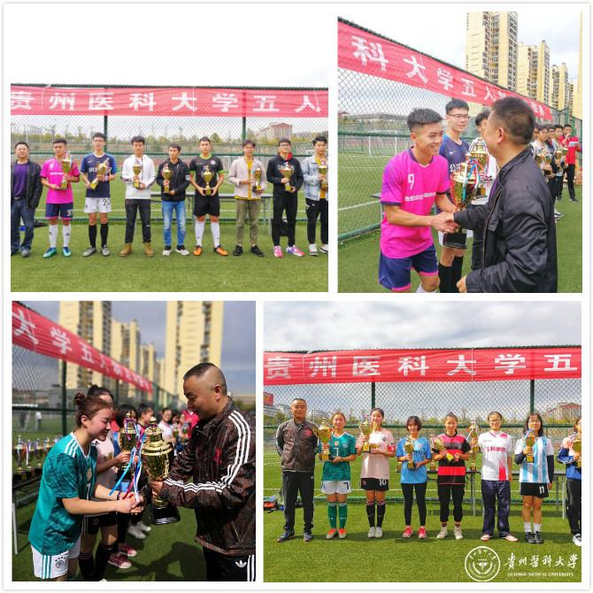 11月1日,万象城官网第二届大学生五人制足球联赛颁奖仪式及闭幕式在贵医五人制足球场举行。本次联赛分为小组赛、淘汰赛,排位赛、半决赛决赛等90余场比赛,通过历时两周的激烈竞争,最终17级运动与健康学院获得男子组第一名,公共卫生学院(联队)、大健康学院(联队)分别获得第二和第三名;运动与健康学院获得女子组第一名,麻醉学院、基础医学院分别获得第二和第三名。