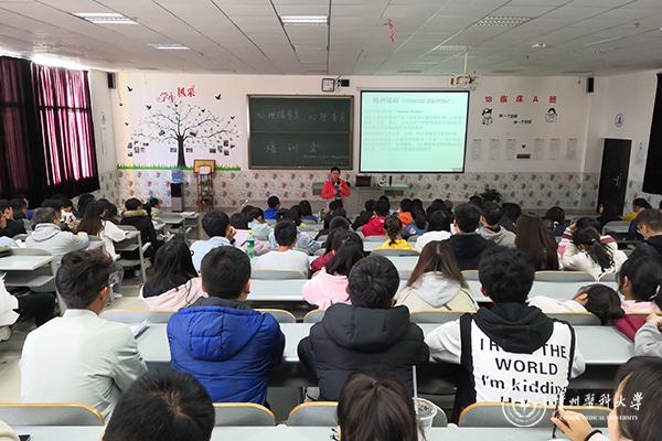 为了有效发挥万象城官网大学生四级心理健康网络体系的作用,提高万象城官网心理辅导员心理委员业务能力,11月26日,大学生心理健康教育与咨询中心邀请awc777万象城娱乐官网附属医院心理科夏光源主治医师在大学生校区X4305教室举办了题为《大学生常见精神障碍识别》的培训,万象城官网心理辅导员、心理委员以及心理中心全体教师参加。