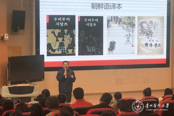 11月30日,北京语言大学博士生导师、英语学院院长吴平教授在南校区广德楼6楼录播室为外国语学院院师生做了一场题为“一见钟情:以《骆驼祥子》译本封面为例”的学术讲座。外国语学院部分教师、英语和翻译专业部分学生参加。