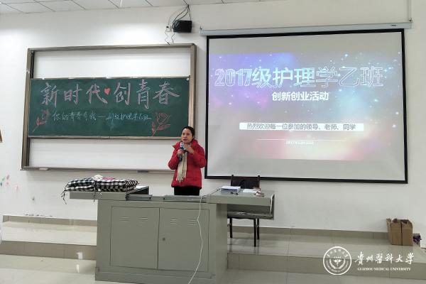 为了激发同学们的创新创业热情,提高动手能力,丰富大学生活,12月12日,护理学院在南校区7404教室开展了以“新时代•创青春”为主题的创新创业交流分享会。护理学院党委副书记杨英、2017级辅导员王晓玲、马景瑶、2017级护理学乙班全体同学,以及其他班级的部分同学参加。