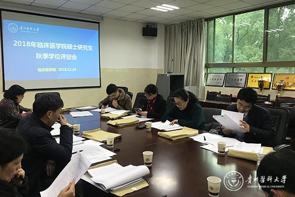 12月24日,临床医学学位评定第一分委员会在临床医学院四楼会议室召开2018年秋季硕士学位评定会,学位委员会委员参加会议,会议由学位评定委员会主席楚兰主持。