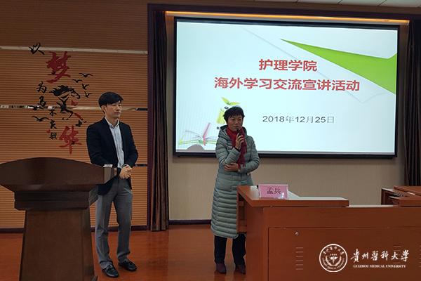 活动由王秀红主持。孟兵以《中菲高等护理教育的现状与优势对比》为题,重点介绍了菲律宾圣保罗大学护理专业硕士、博士教学的内容、时间以及学校的相关制度,还特别强调了全英文教学所带来的优势。他指出就目前护理的就业前景而言,虽然护理比其他医学类起步较晚,但崛起的速度十分迅速,就业前景开阔。同时他建议同学们能够往更好的层次发展,比如:出国留学读研、读博。其次,他还为在座师生介绍了有关菲律宾的环境、留学费用等情况,现场解答了老师和同学们提出的问题。