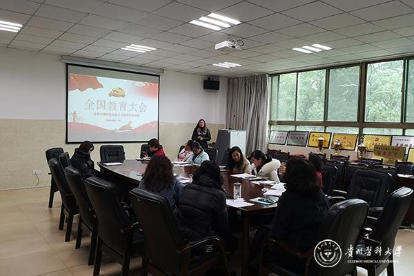 为了全面贯彻落实《贵州省教育厅办公室关于做好全省教育系统学习贯彻全国教育大会精神干部教育培训工作的通知》要求,在学校党委的统一部署下,临床医学院党委高度重视,第一时间组织召开宣传会,临床医学院全体人员及学生代表参加会议。