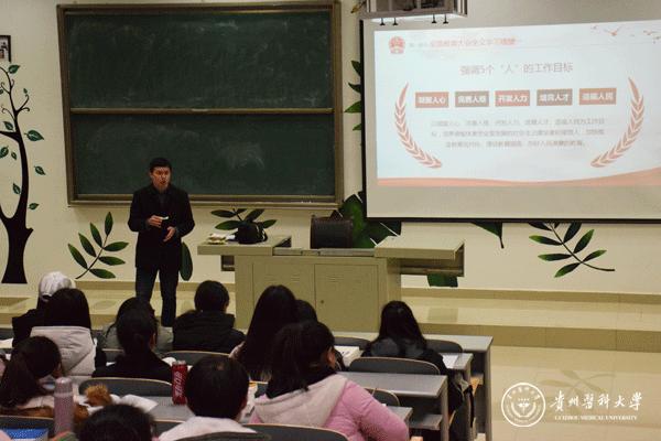 活动中,药学院辅导员雷豪、万玲曦、徐冉、陈祥贵及兼职班主任王磊、甘师泉、贺智勇等老师,带领各年级、各班级围绕“立德立志立信·悟人育人树人”主题,以习近平新时代中国特色社会主义思想及习近平总书记关于教育的重要讲话精神为指引,着重从学业规划、素质提升、诚信考试、感恩教育、安全警示等方面开展教育活动。通过老师的宣讲、案例分析、同学讨论、班级宣誓等环节,充分调动了同学们的参与积极性。活动内容贴合实际,突出互动,重在启发,成效明显。