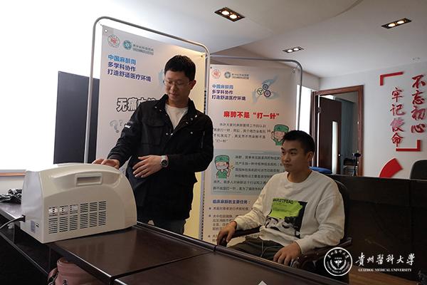 教师党员马燕教授向居民群众详细讲解什么是心肺复苏,以及怎样对病人进行心肺复苏,并用模拟道具正确演示心肺复苏的方法及要点。学生党员主动为大家演示了生活中如果遇到需要急救的病人时,应该如何判断、呼救以及施救等过程。邹小华结合贵医附院举行的“麻醉宣传周”的宣传,通过分娩阵痛仪器让男士现场体验产妇分娩的疼痛等级,呼吁大家关爱女性,在现有成熟技术和安全的医疗条件下选择无痛分娩减轻产妇的痛苦,给予准妈妈们更多的关怀。