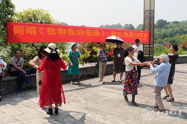 车田景区位于国家级新区——贵安新区直管区之最东端,周围山坡湖泊环绕,建筑古朴,景色迷人,古木参天。老同志刚下车,便结伴环湖拍照留影。在工作人员的精心组织下,一首由老同志自己伴奏自己演唱的《我和我的祖国》歌曲,拉开了活动序幕。老同志闻音聚集在一起,大家手持国旗,齐声歌唱。有的老同志还用舞蹈随歌起舞,带着喜庆的笑容,演绎了老同志们对祖国的热爱,曲终,掌声四起。老同志们三五成群聊着近期生活、身体状况,抚今追昔,感叹岁月的变迁、国家的富强,城镇的变化、环境的改善和退休生活的惬意。从堆满笑容的脸上,不难看出老同志们内心的喜悦和对国家日益强盛信心满满。