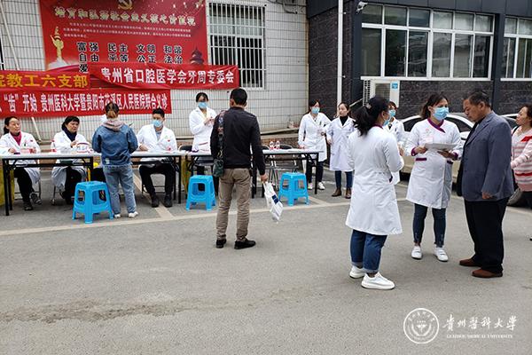 为认真贯彻落实党的十九大报告,促进基层党组织和党员充分发挥模范带头作用,以实际行动践行党的群众路线,发挥所长为群众服务,同时,更好地宣传牙周病的形成原因、症状、预防、治疗及日常维护等内容,4月12日上午,附属口腔医院教工六支部书记、牙周黏膜科主任蔡扬,牙周黏膜科副主任周瑛带领牙周黏膜科一行走进花溪区人民医院,联合花溪区人民医院开展义诊活动,为广大群众提供口腔健康咨询和诊疗服务。