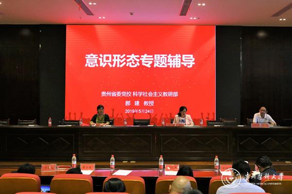 5月24日,药学院、生物与工程学院在道德讲堂联合举办意识形态工作专题培训,本次培训邀请贵州省委党校科学社会主义教研部郝建教授作专题辅导,药学院、生物工程学院全体党政领导班子、教职员工生代表近300人参加,讲座由生物与工程学院党委书记封韬主持。