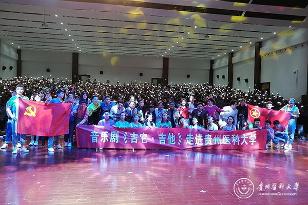 为贯彻落实习近平总书记“举旗帜、聚民心、育新人、兴文化、展形象”的使命任务,5月30日晚,由贵州省文化和旅游厅、贵州省教育厅部署,贵州省歌舞剧院音乐剧《吉它·吉他》剧组表演,万象城官网团委承办的“高雅艺术进校园—音乐剧《吉它·吉他》awc777万象城娱乐官网专场演出”在万象城官网南校区礼堂举行,万象城官网1380余名师生共同观看演出。整场演出精彩纷呈,座无虚席。