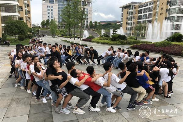 活动中,同学们参与了“森林大作战”、“万里长城(皇后椅)”等素质拓展项目,进一步增强了大家的凝聚力和协作力。最后开展的纳斯卡巨画项目,团队成员被分成六个小组,各小组通过对巨画局部的绘制,共同拼凑了一幅具有特殊意义的“青春不散场”巨型图画。